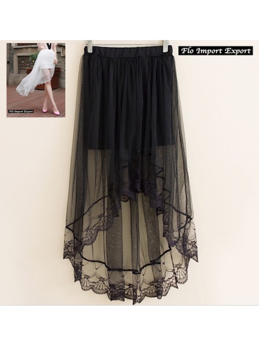 Mini Gonna Donna Tulle Lungo Trasparente e Pizzo 130038